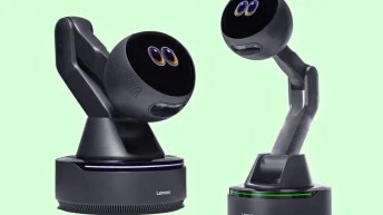 A robot arm with puppy dog eyes is one of Lenovo’s desktop AI concepts
